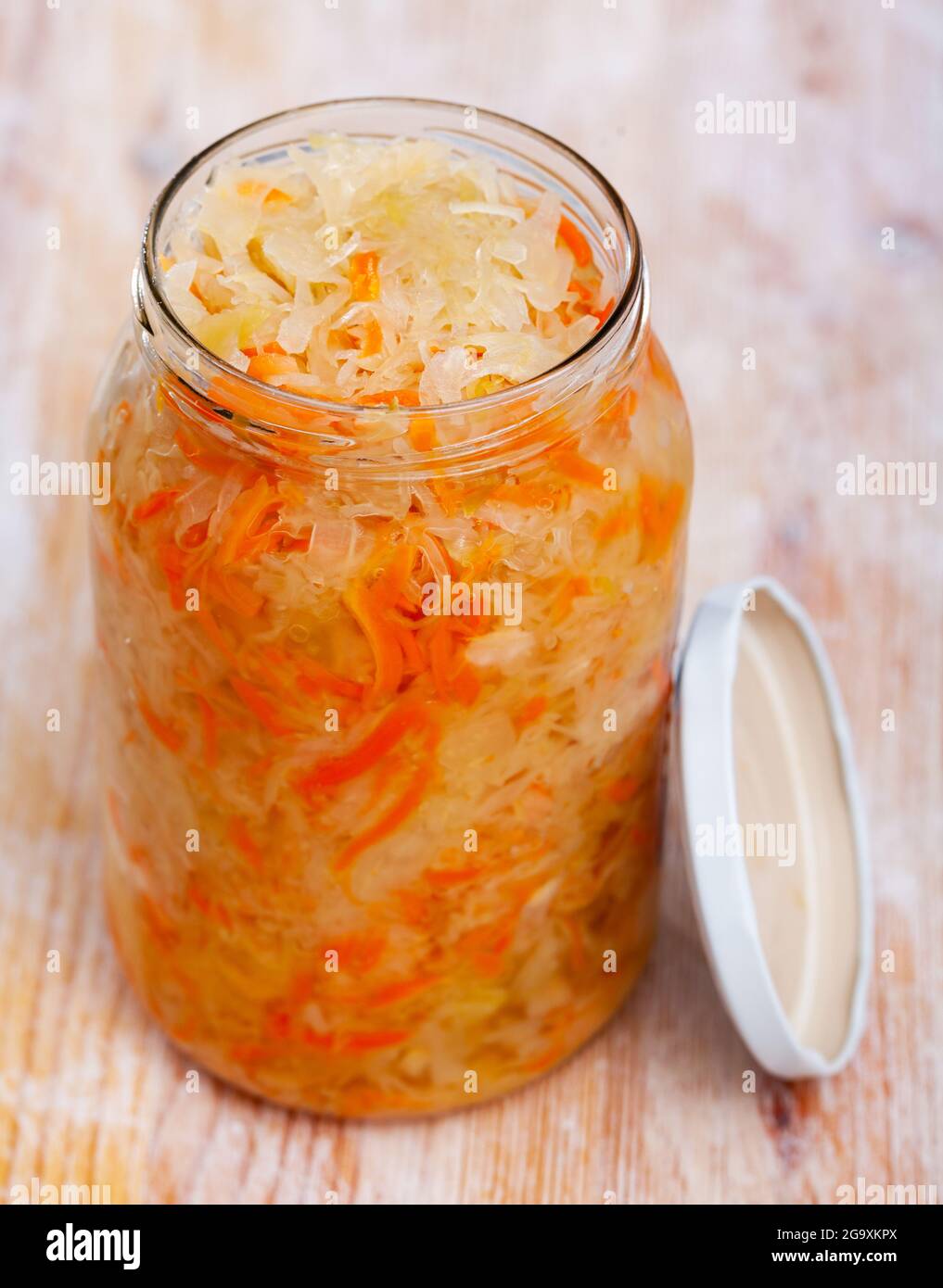 Pot En Verre Avec Chou Fermente Rape Photo Stock Alamy